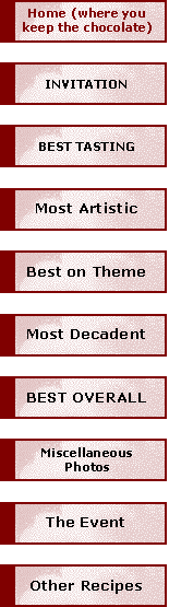 - Best Tasting (Susan) - Most Artistic (Malcolm) - Best on Theme (Karen) - Most Decadent (Mike) - Best Overall (Craig)