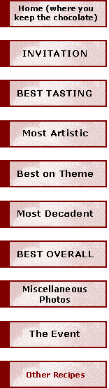 Deborah's (La Brea Tar Pit) Vegetarian Chili (from Real Simple magazine) Hands-on Time: 15 minutes Total Time: about 2 hours Makes 6-8 servings Chocolate added to chili may seem unusual, but it gives this dish a rich color and intensifies the flavor. 1 Tblsp. olive oil 1 clove garlic, minced 1 small onion, finely chopped 1 green bell pepper, cut into 1/4 inch dice 2 tomatoes, cut into 1/2 inch dice, OR one 16-oz can whole tomatoes, drained and chopped 2 15-oz cans chickpeas, drained and rinsed 2 15-oz cans kidney beans, drained and rinsed 5 cups vegetable broth 2 tsp. ground cumin 1 tsp. salt 1 1/2 oz. bittersweet chocolate In a stockpot, over medium heat, cook the oil, garlic, onion and green pepper until slightly softened, stirring occasionally, about 5 minutes. Add the tomatoes, chickpeas, kidney beans, vegetable broth, cumin, and salt. Bring to a boil over high heat. Reduce heat to low, cover, and simmer, stirring occasionally, until thickened, 1 to 1 1/2 hours. Before serving, stir in the chocolate until melted. Keep it: Store in refrigerator up to 3 days or in the freezer up to 4 months. Freeze individual servings in heavy-duty zipper bags.